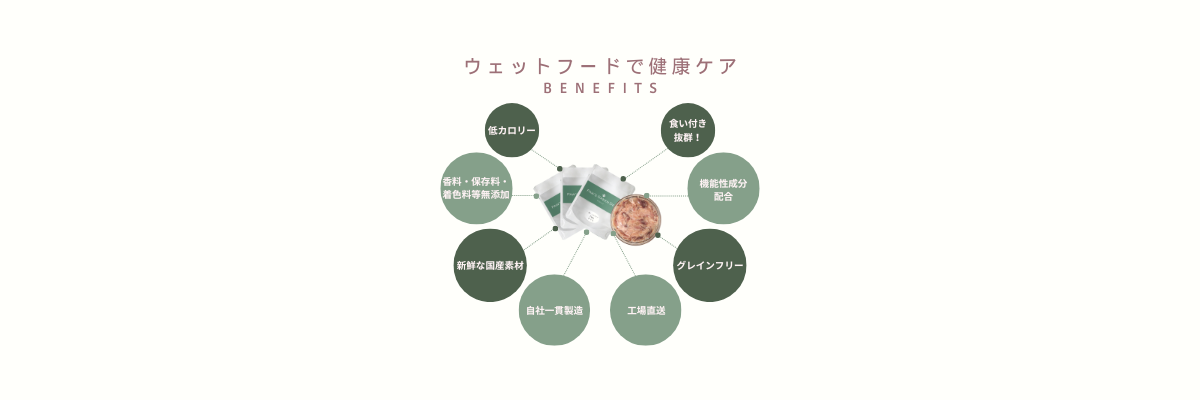 新鮮で上質な厳選素材をベースに、必要なビタミン・ミネラルを配合した総合栄養食。 ウェットフードもフリーズドライも中身は同じ、処理方法が異なるだけ。フリーズドライは水やぬるま湯で戻すほか、ウェットフードで戻してさらに美味しく食べる方法もおすすめです。 どちらも食いつき抜群で、毎日のごはんにぴったりです。